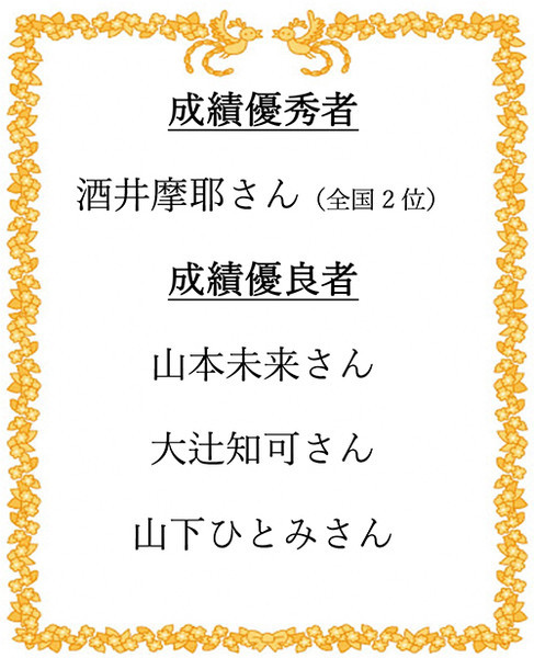 成績優秀賞(全国2位)を受賞した酒井摩耶さん から一言をいただきました。