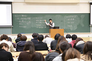本学では、学生が現況の社会全体における就職環境・雇用環境を理解し、就職に対する意識や働くことへの意識を向け、キャリア教育の初歩的段階として、自らのキャリアを考える上で必要となる自己発見・自己理解を基に大学生活の目標を設定することができるように、キャリア科目を設置しています。
